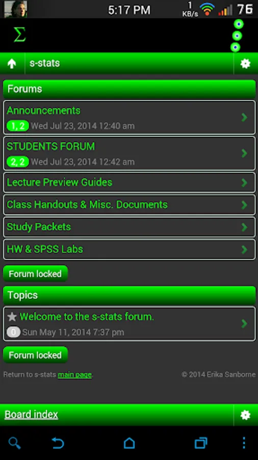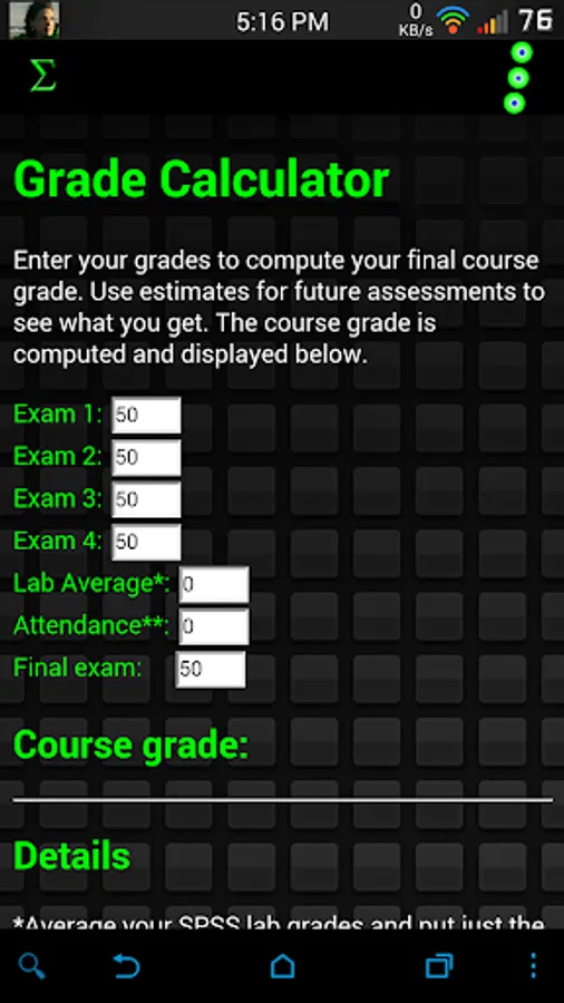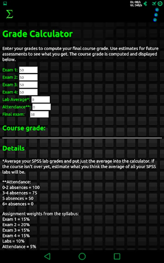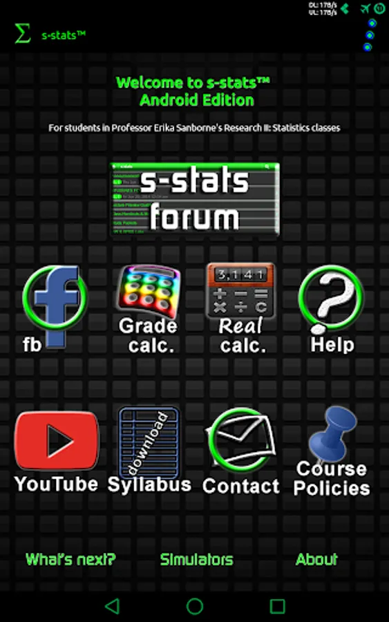 NOTE: This app is on the Play Store as a legacy app. s-stats was last used in the Fall 2014 semester at the University of Massachusetts Lowell. It makes no sense to download it now unless you want to look at one of the apps I made for my classes a long time ago.