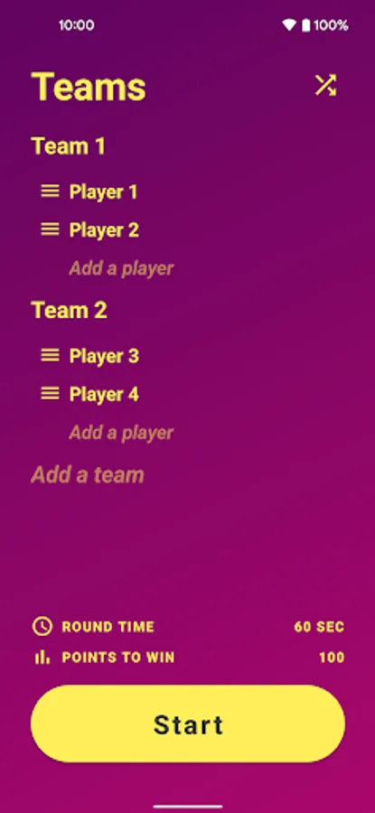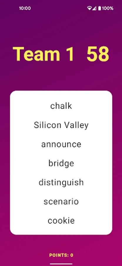 * Multiple game modes: You can choose to play with 1 or 7 words on each card, and you can play in 2 or 3 teams.