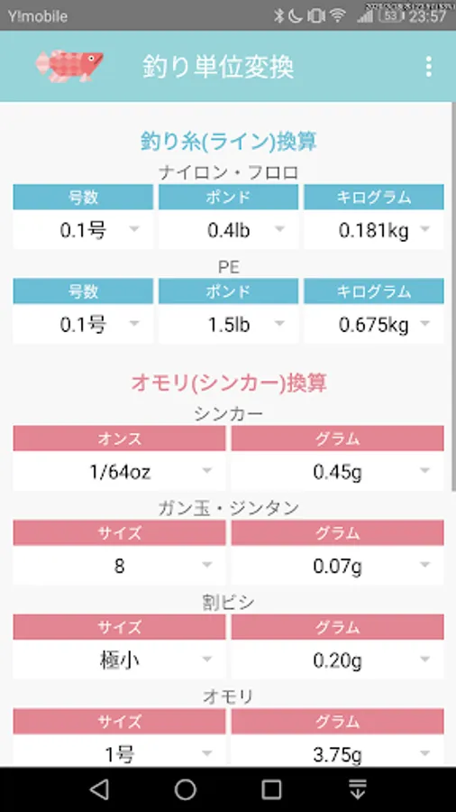 Each size of the yarn (line) and weight (sinker) to be used in fishing, you can convert to pounds and grams.