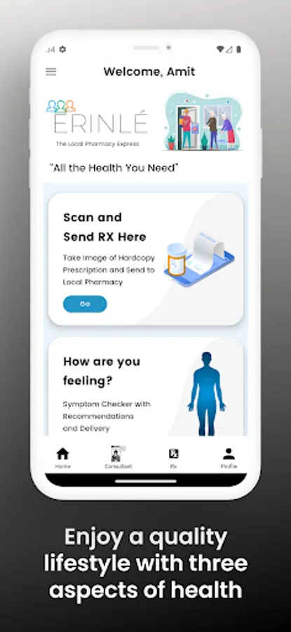 Erinlè is an app that focuses on self-health education and access to health and healthcare. The information inserted by each customer will be appropriately customized and tailored to the customer's needs based on symptoms complaints, over-the-counter (OTC) recommendations for relief, diet goals, and fitness goals. Specialized technology can also match healthcare professionals with customers based on needs assessments and location. Through the use of Erinlè , individuals are empowered to become educated and knowledgeable about health to assist themselves and others in reaching their health goals.