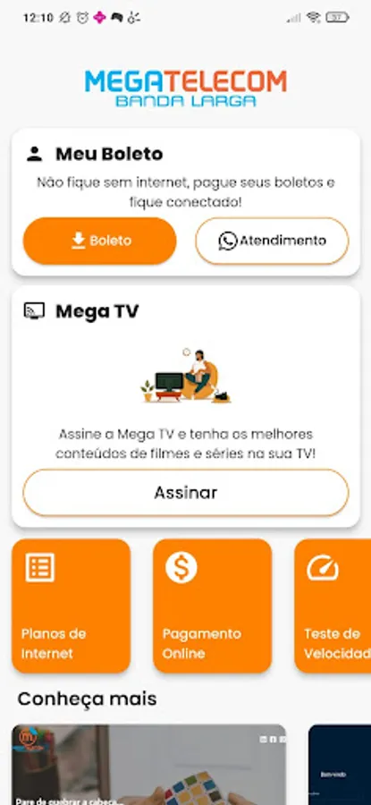 With the new Mega Telecom application, you can pay your monthly bills for your internet plans with your credit card and bank slip, in addition to placing installation orders, speed testing and also accessing the subscriber center.