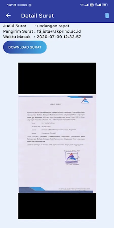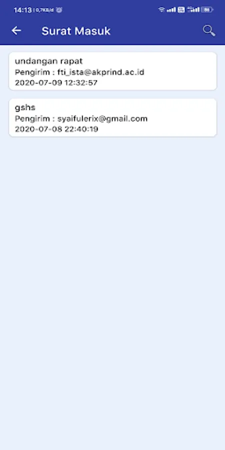 E-Mail Application is a mobile-based application that is used to handle the issue of correspondence within the Faculty of Industrial Technology IST AKPRIND Yogyakarta, including sending letters from the Faculty of Industrial Technology to lecturers.