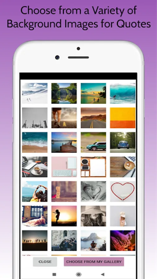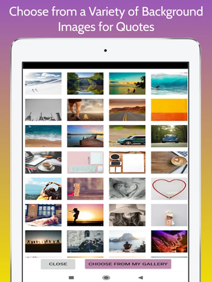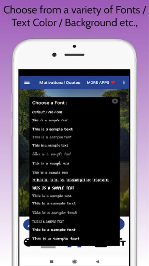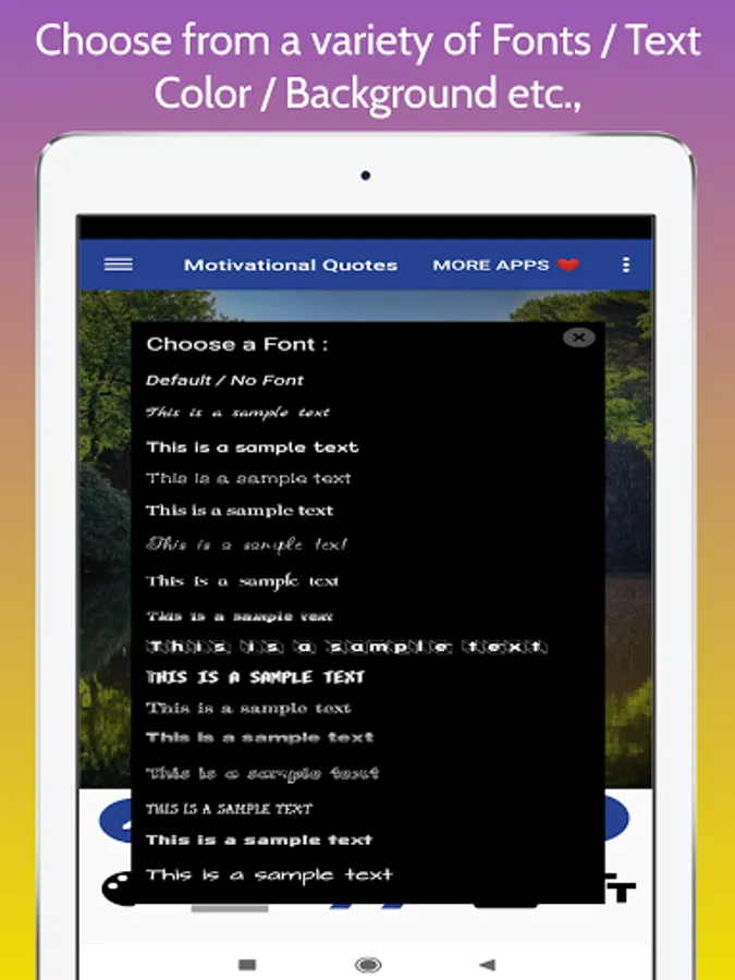 You can Customize Quotes via Quote Editor with various Fonts / Text Colors / Background Colors or Images or even choose Your Own Background Picture from Gallery for Inspirational Quotes.