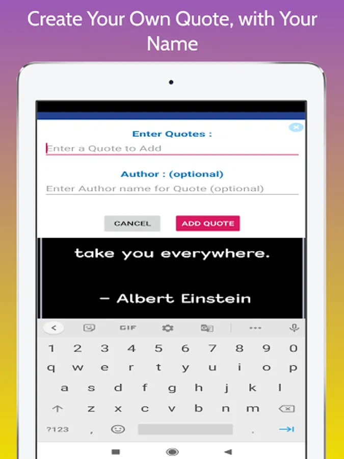 Experience the Quote Creator and Editor features to Make and Customize Your Own Quotes with Your name to share and set as status.