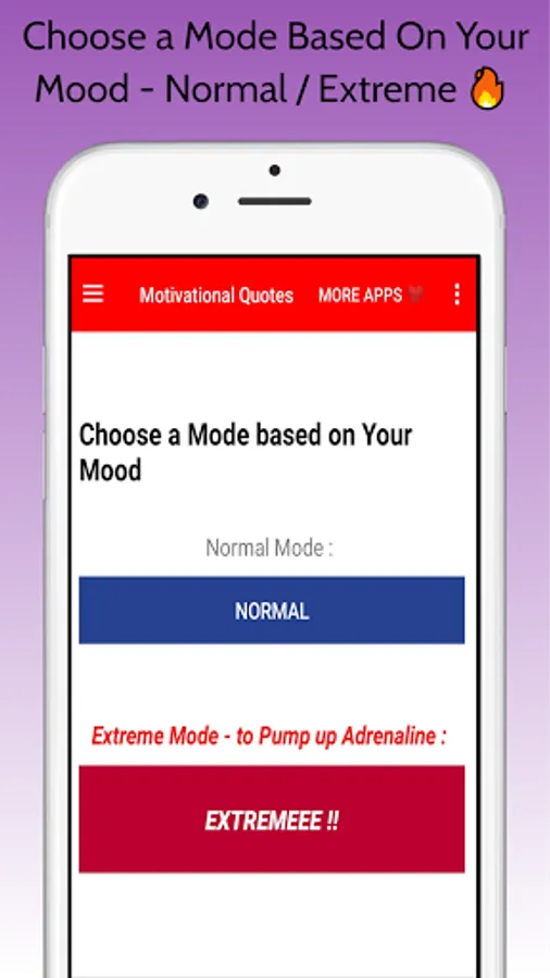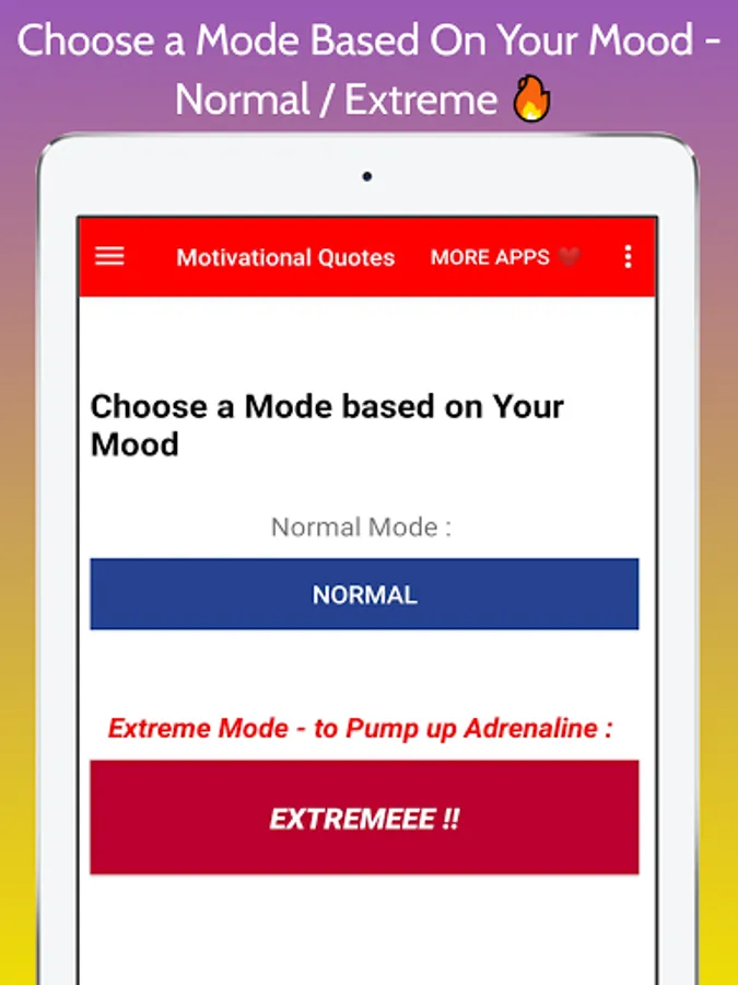 You can choose a Mode based on Your Mood - Normal Mode (Inspiration Quotes) or Extreme Mode 🔥 (Strong Self Boosting Motivational Quotes)