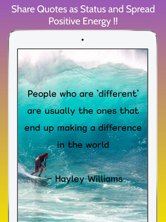 The App includes many powerful positive motivational quotes of all varieties, mixed randomly including :