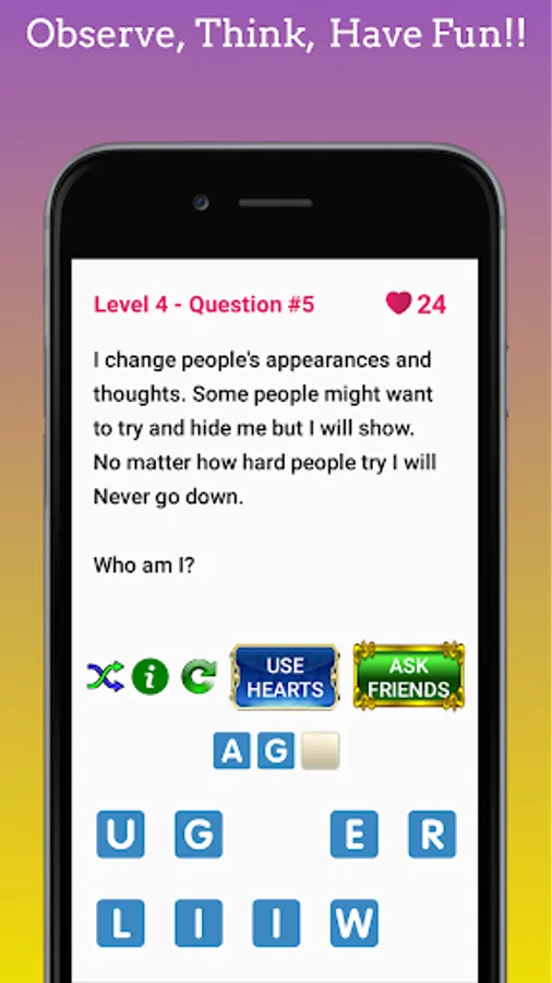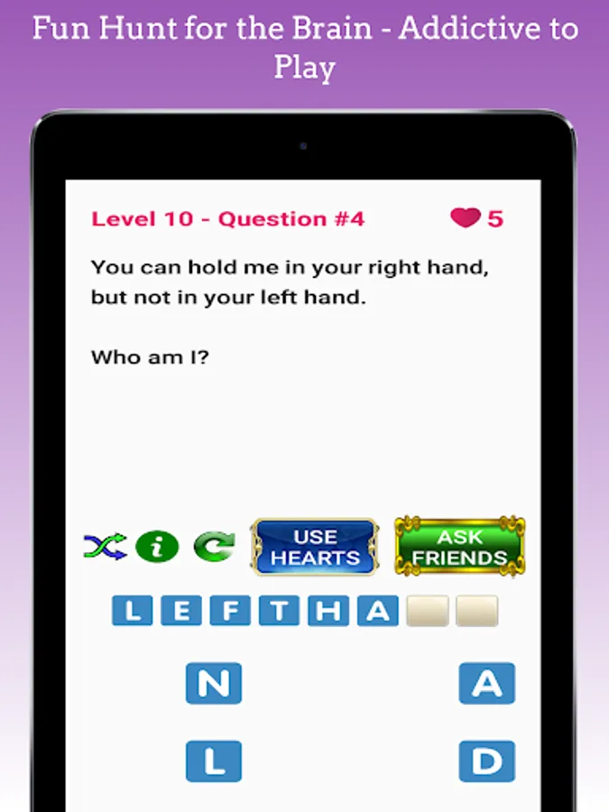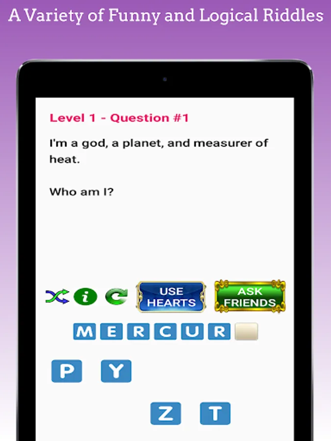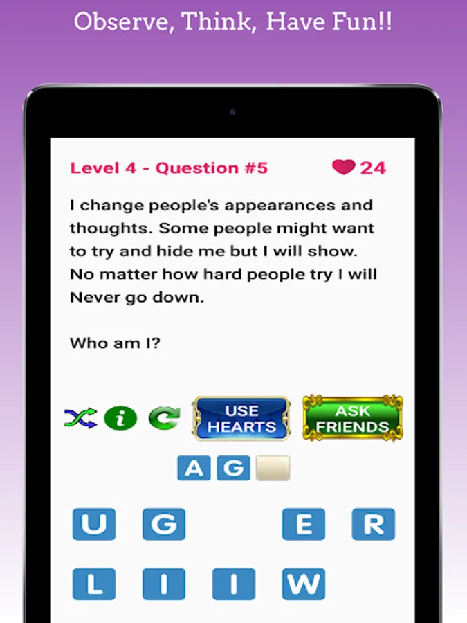 A Riddle Game is a brain game with more fun and thought provoking riddles.