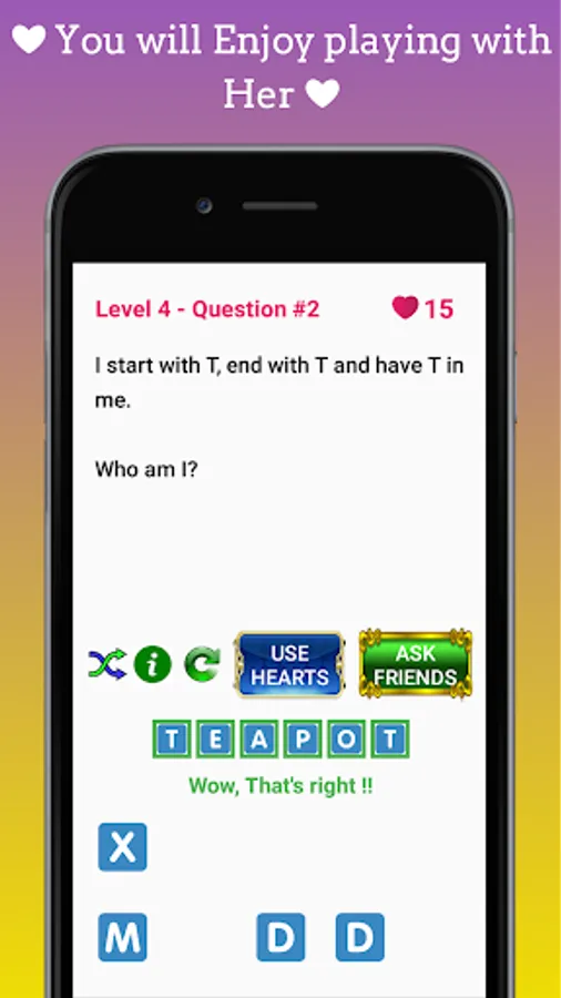 Gives you a mix of Riddles, Puzzle and Trivia. Have Fun Solving and Playing !!