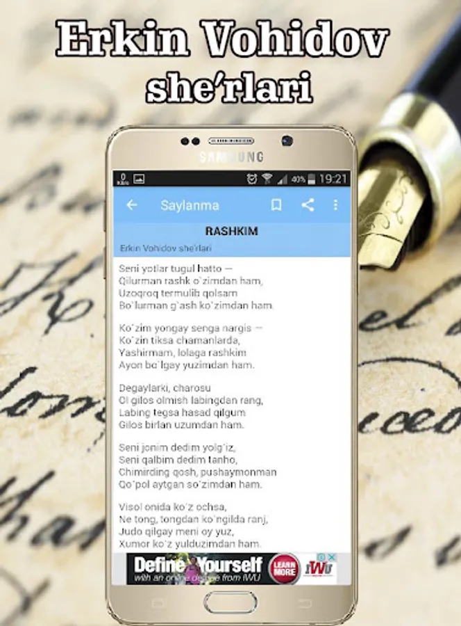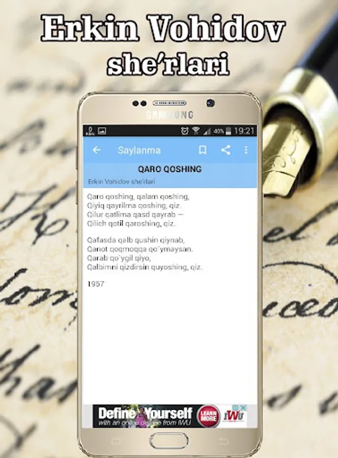 Ushbu ilovada shoirning xalqimiz qalbidan chuqur joy egallagan she'rlari, g'azallari bilan tanishishingiz mumkin.