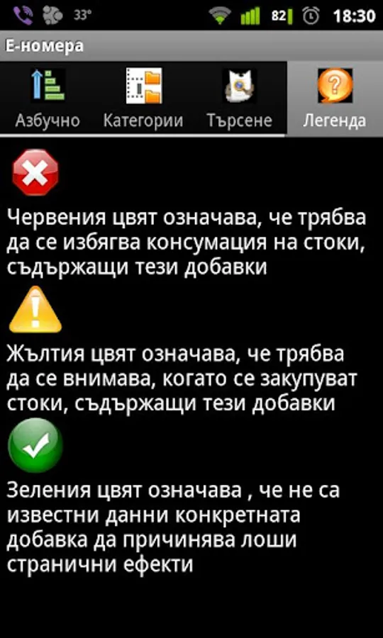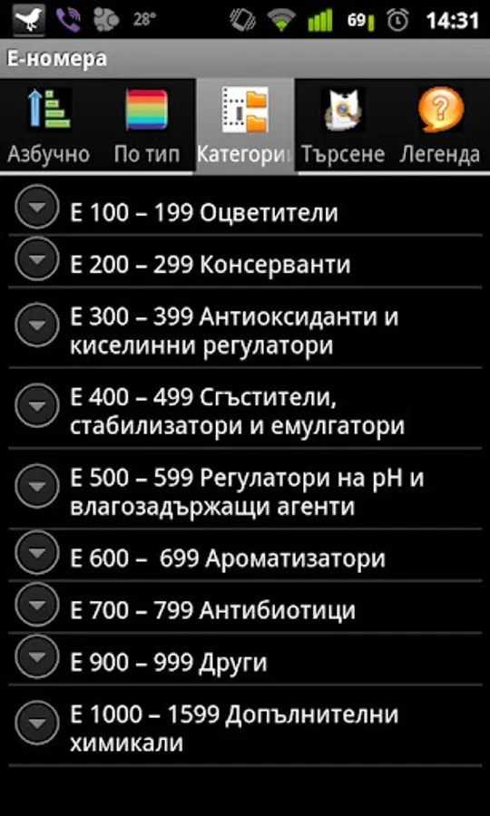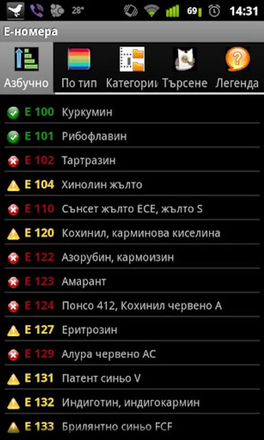 2. Търсите по тип (опасни, да се избягват от вегетарианци и т.н.);
