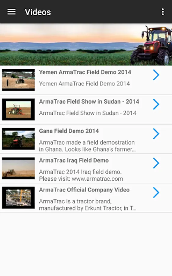 ArmaTrac mobile application allows you to follow latest ArmaTrac tractor model, learn about authorized service and dealers, learn the current weather conditions.