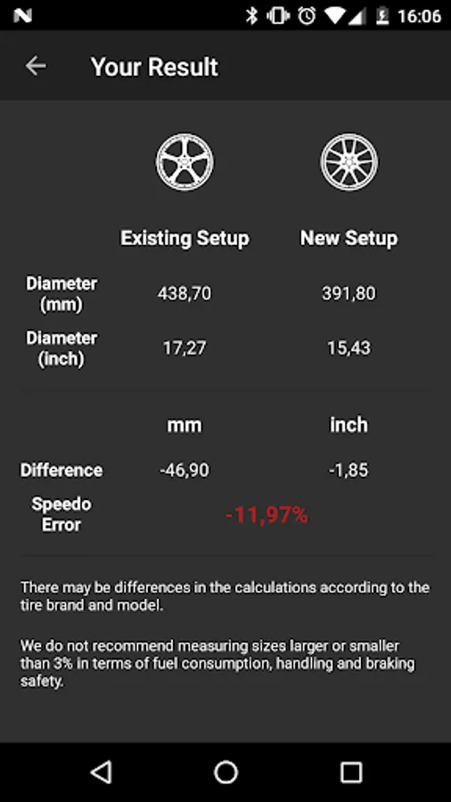 "Tyre Size Calculator" application is developed to provide easy and accurate information to users. You can calculate your new tyre and decide which tyre size is suitable for your car.