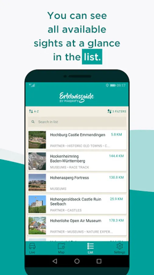In the Experience Guide, all locations are displayed on an interactive overview map or in the clearly arranged list. The more detailed premium sights feature practical links to websites and tourist information next to the text and images. A simple click is all that it takes for your chosen navigation app to take you directly to each sight.