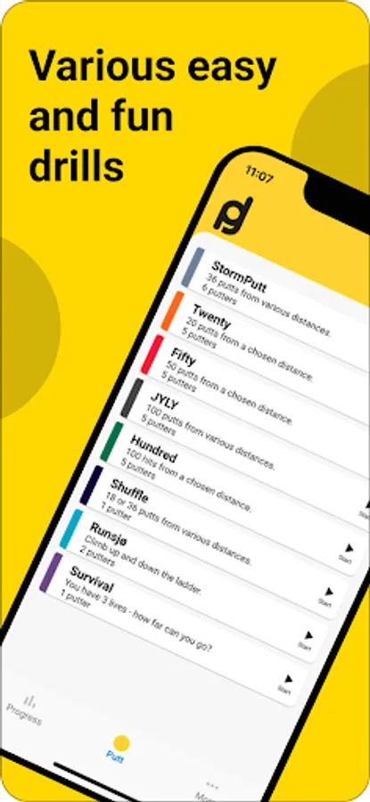 Welcome to dgputt, and a fun and effective putting practice . The app keeps track of your progress, and you will soon see your results improve.