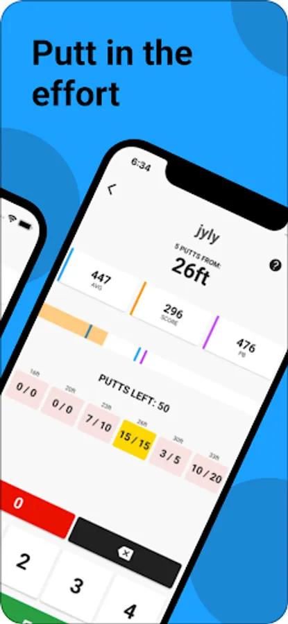Dgputt offers a variety of putting drills to fit your needs. Distances can be displayed in feet or meters, and you can practice from 13ft/4m to 50 ft/15m.