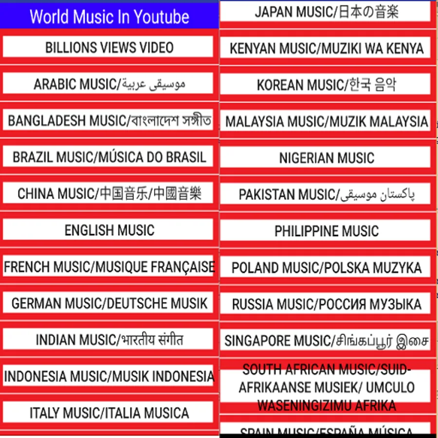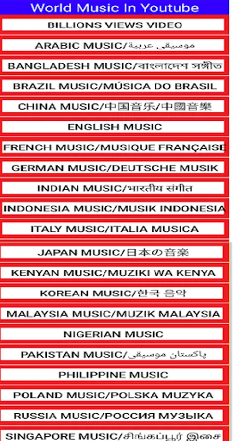 This app shows 27 countries (languages) music or song.