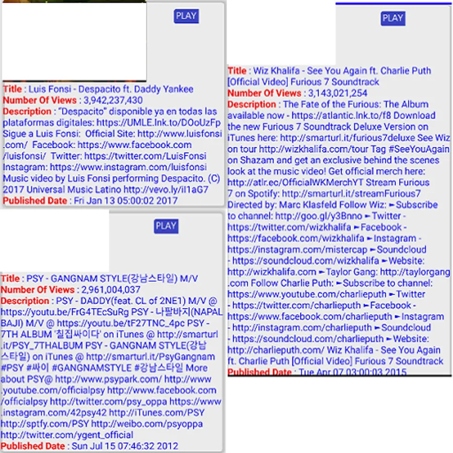 This app shows 91 YouTube videos , the videos view by a billion times or above or near to billion that means in the near future those below billion views videos will reach billion and above views .