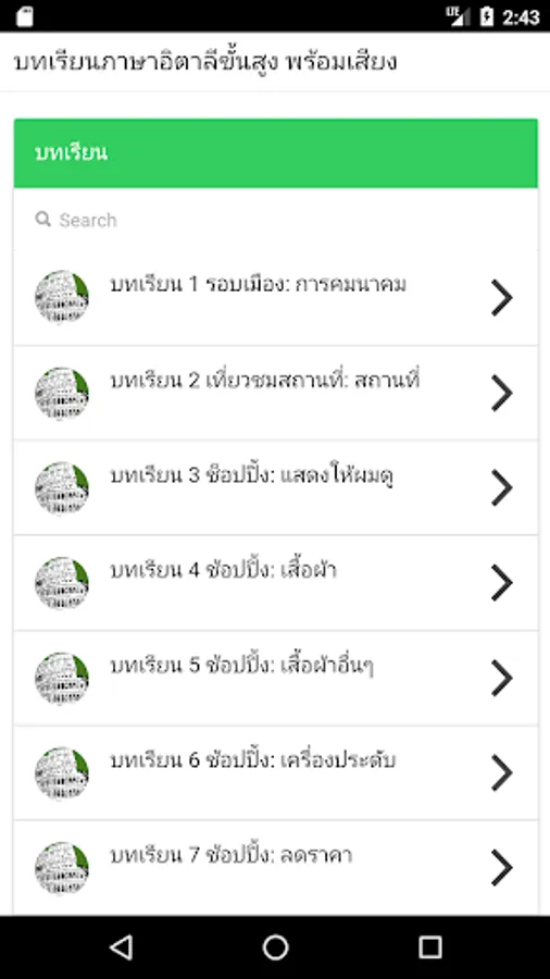 App Italian lessons at a high level. Can help those interested in learning Italian will learn more advanced vocabulary and language development has improved with the app is easy to use. There are many Italian words, expressions, word processing and special than other apps, there is the Italian phrase in audio format online. Where you can practice pronunciation with the native Italian pronunciation made to your exact River.