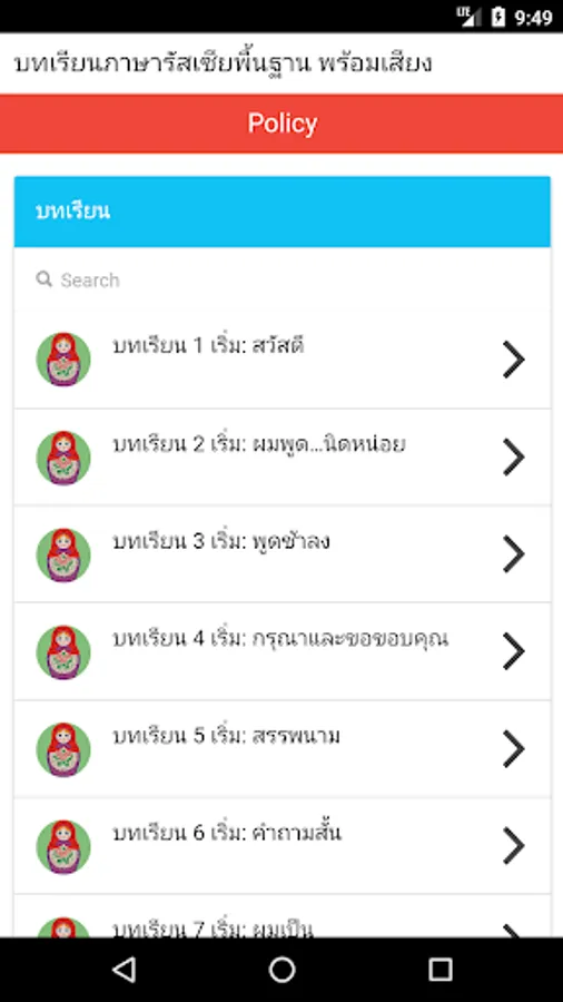 The app includes basic Russian language lessons for beginners interested in learning the Russian language to be communicated. It's a basic lesson in Russian with audio lessons included the basics you need to know. You have to like it You can learn Russian base anywhere. Every time they wish to practice the basics of the language. The foundation is right for you. This app has the answer for you. Russian language lessons based on this app.