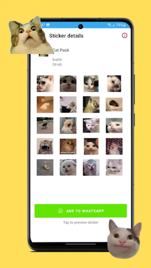 Experience the joy of sharing adorable cat stickers with your pals using Cat Stickers for WAStickersApps.