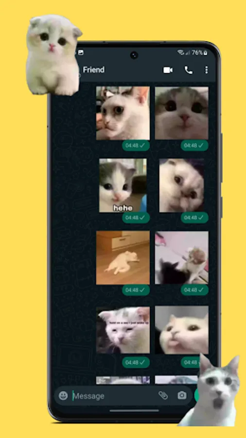 Embrace the whimsy of cat memes, beautiful felines, love-infused cat stickers, endearing kittens, famous cat personalities, and cat-themed emojis by downloading our Cat wasticker collection for whatsapp.