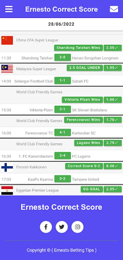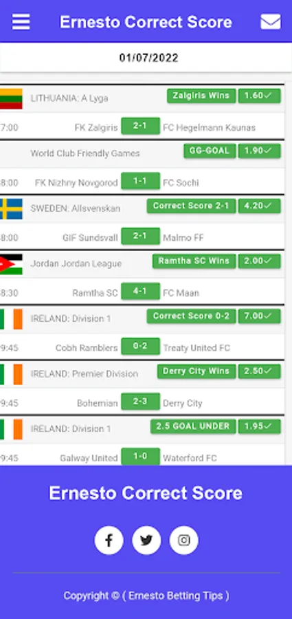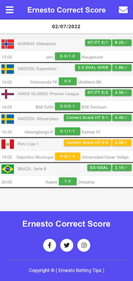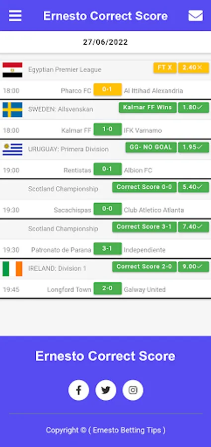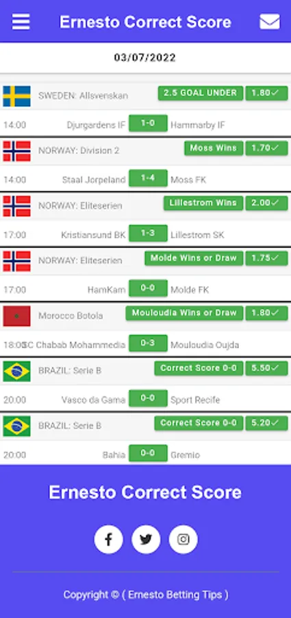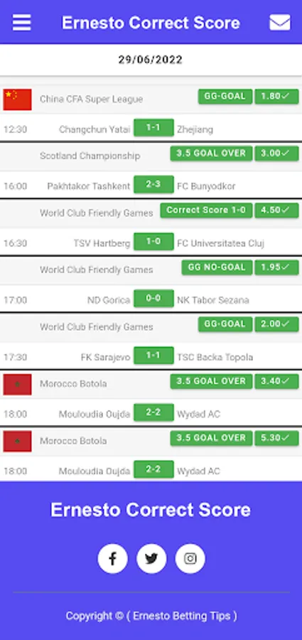 If you want to make your dreams come true, you can buy our Ernesto correct SCORE Betting application and use it for life. Ernesto correct SCORE app provides sure betting tips and always wins.
