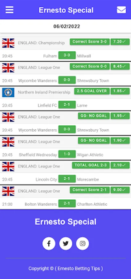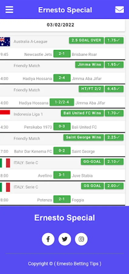 If you want to make your dreams come true, you can buy our Ernesto special Betting application and use it for life. Ernesto special app provides sure betting tips and always wins.