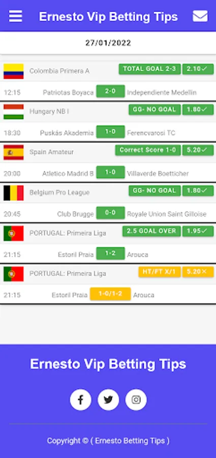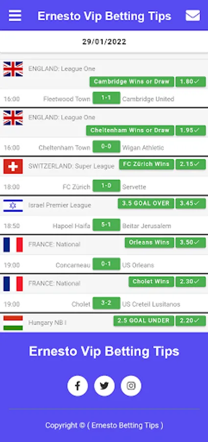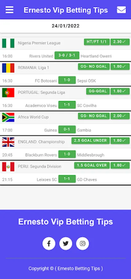 If you want to make your dreams come true, you can buy our Ernesto EASY Betting application and use it for life. Ernesto EASY app provides sure betting tips and always wins.