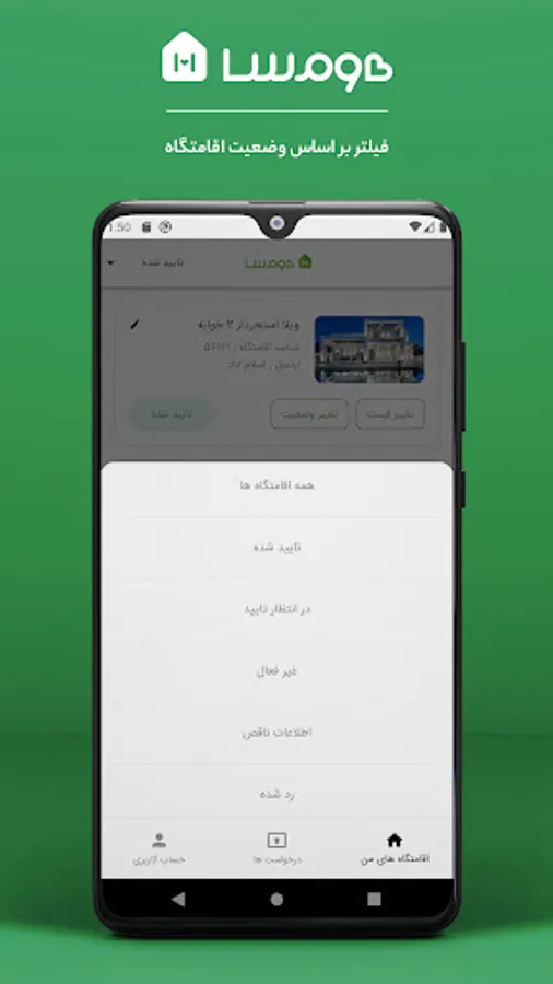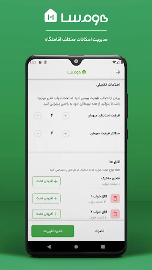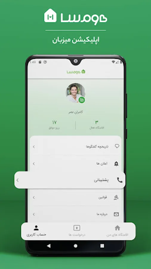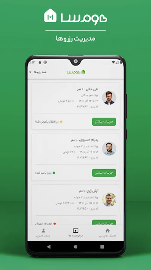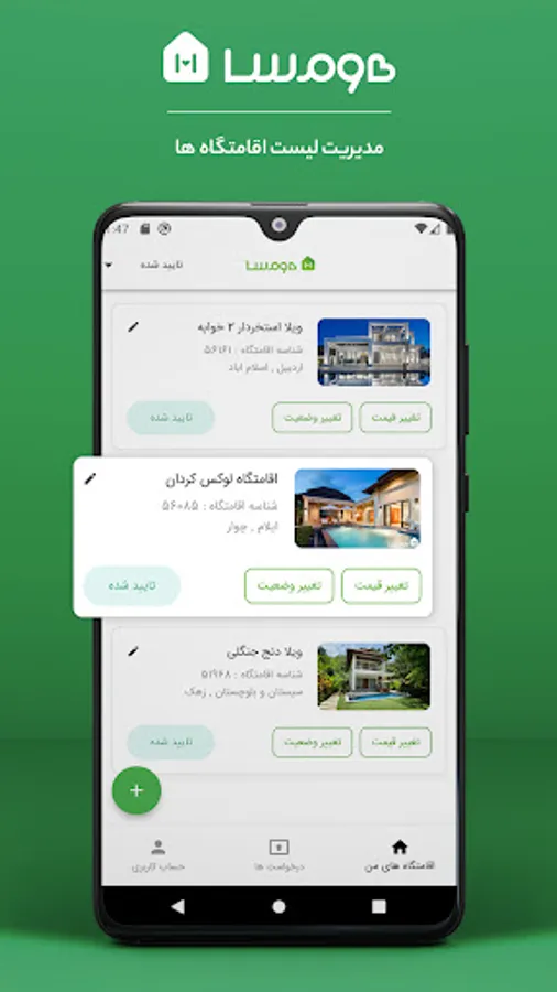 Homsa is a website and online application for renting villas, suites and accommodation throughout Iran. All Homsa hosts from all over Iran can be one of the Homsa hosts by receiving the hosting application.