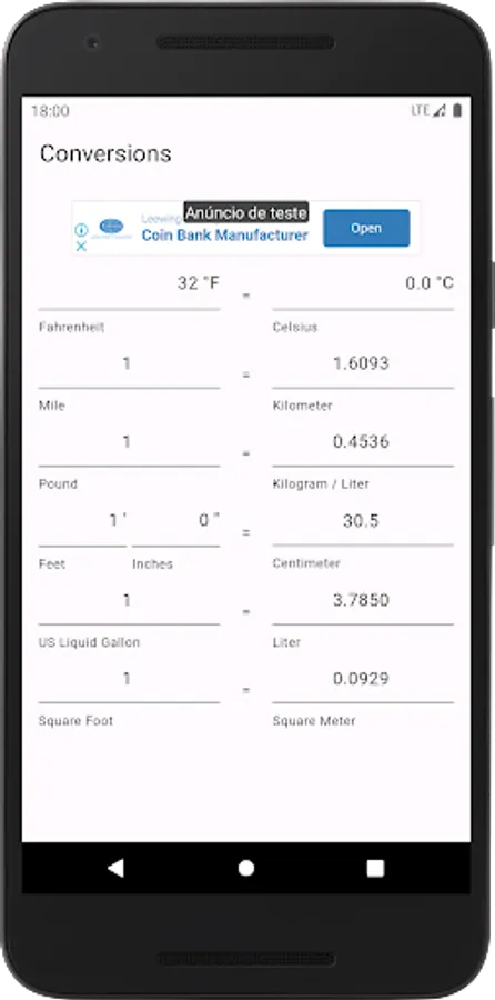 Convert to the most commonly used units in the United States, such as fahrenheit to celsius, dollar to real, miles to kilometers, pound to kilogram / liter, feet and inches to centimeter, US liquid gallon to liter and square foot to square meter.