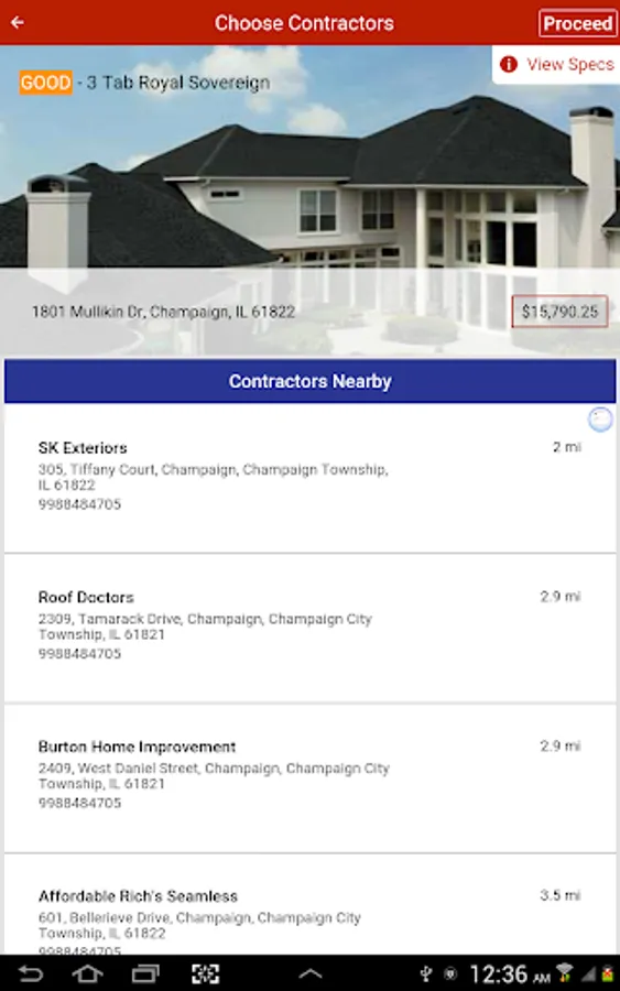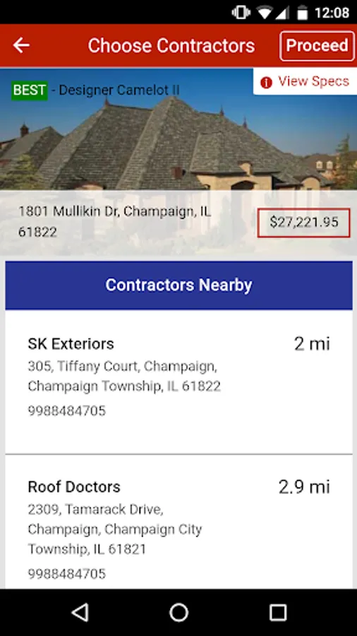 • LOCAL RESULTS - We find you contractors who are near to your roof and are easily accessible. The ERoofPro app finds you contractors who are in 50 miles radius of your entered address.