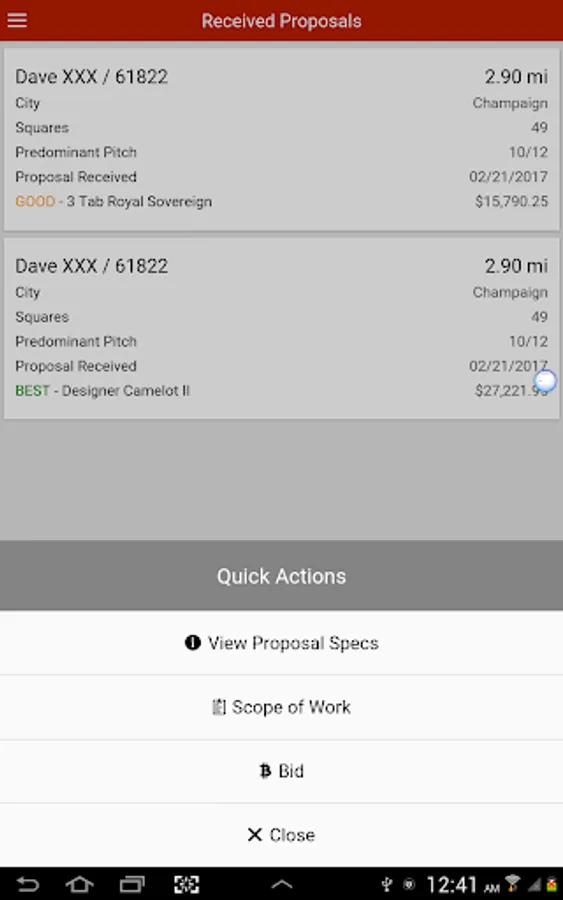 • ACCURATE MEASUREMENTS FROM EAGLEVIEW - What can be more convenient than getting Pre-generated proposals based on accurate measurements?! A maximum of 3 contractors can be selected by the Home Owner which gives you a 33.33% chance to win the job. When you are selected by a Home Owner, you receive a pre-generated proposal, an Eagleview Measurement Report and all you need to do is submit a bid in the range of $50-$250 to win the job.