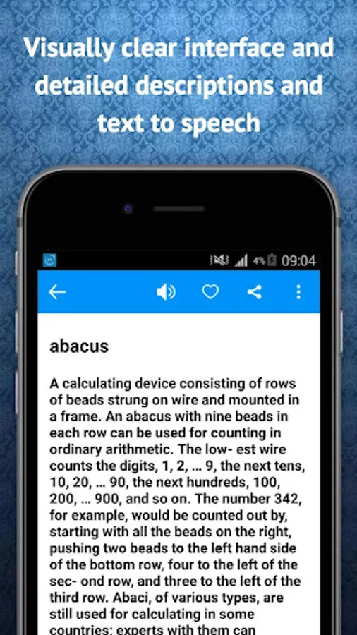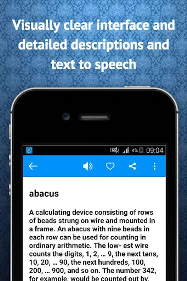 This app is very user-friendly, as it offers an easy search function plus text to speech: just listen to the definition, instead of reading it.