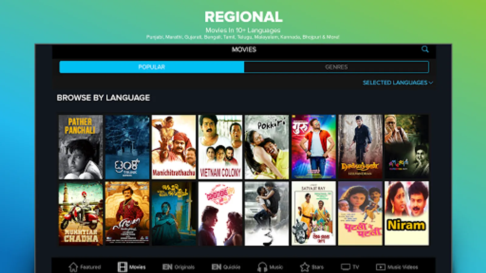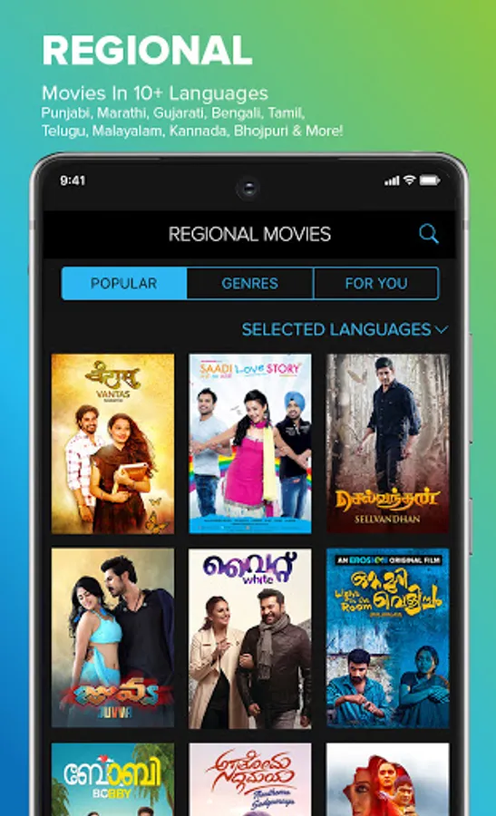 Looking to explore beyond a single language? Eros Now presents a diverse collection of films in languages including Hindi, Tamil, Telugu, Bengali, Marathi and Punjabi all combined in one single entertainment app. We are also proud to present a catalogue of para-dubbed Bollywood megahits such as Bajirao Mastani and Devdas in languages including Russian, Polish and Swahili.