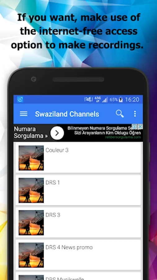 All the satellite data needed to watch Swaziland TV channels are available on this app. Easy and fast access to all the information. If you want, make use of the internet-free access option to make recordings.