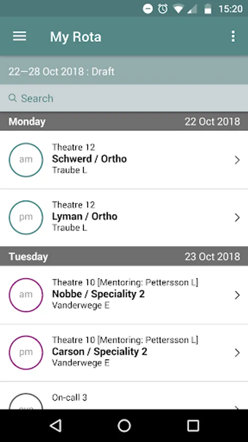 You can see rota information both by location or person, filtered to the groups of your choice, and see all of the department's on-call rotas. Getting in touch with your colleagues is easy - simply tap the 'Call' link displayed next to their name.
