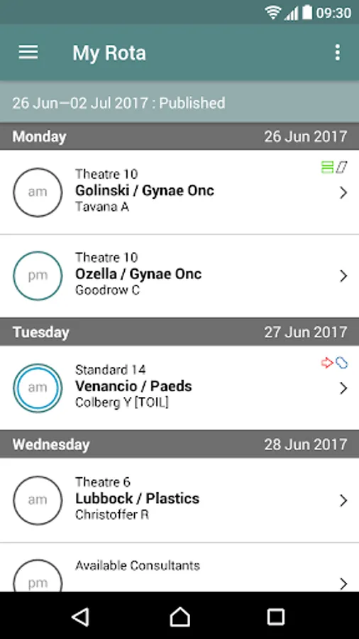 Our newly integrated rota mapping service allows you to connect to other departments using Rotamap services, such as Medirota, within your trust - giving a live view of the other people working with you from those departments in those sessions.