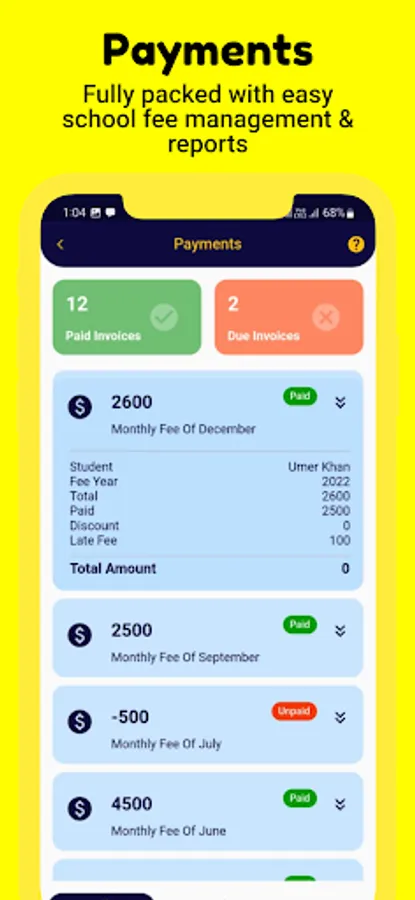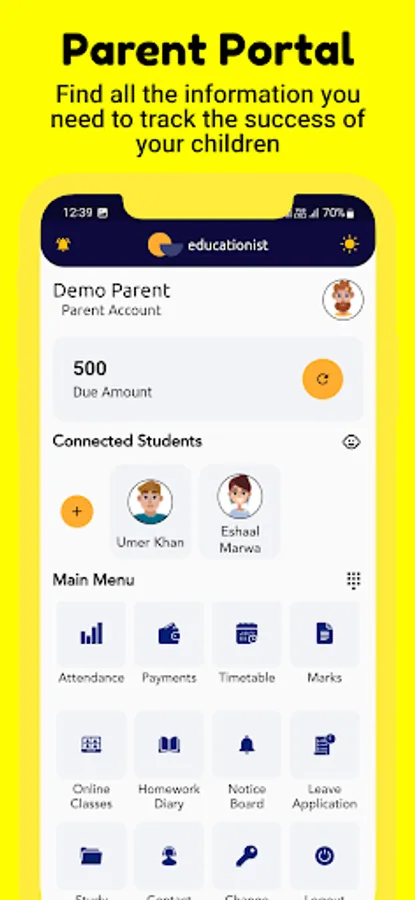 This application allows parent to check their child's daily, weekly, monthly progress, attendance, exam marks, payment history, homework, dues etc.