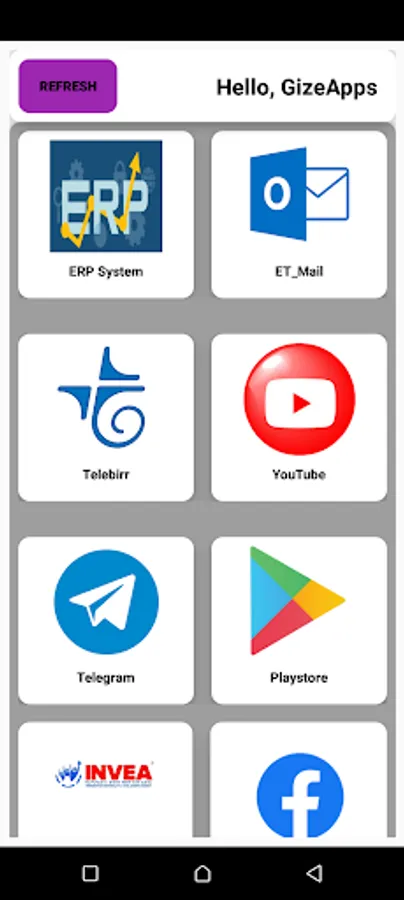 ✓Erp Portal android application it includes main advantage this app to access ERP Portal, outlook (et-mail), telebirr, telegram, Facebook lite, play store,INVEA online passport processing and YouTube ;very fast and easy.