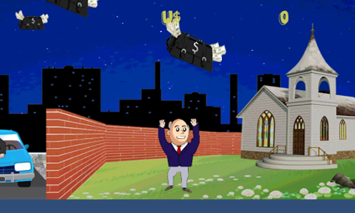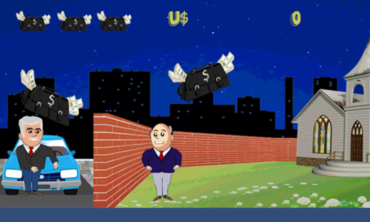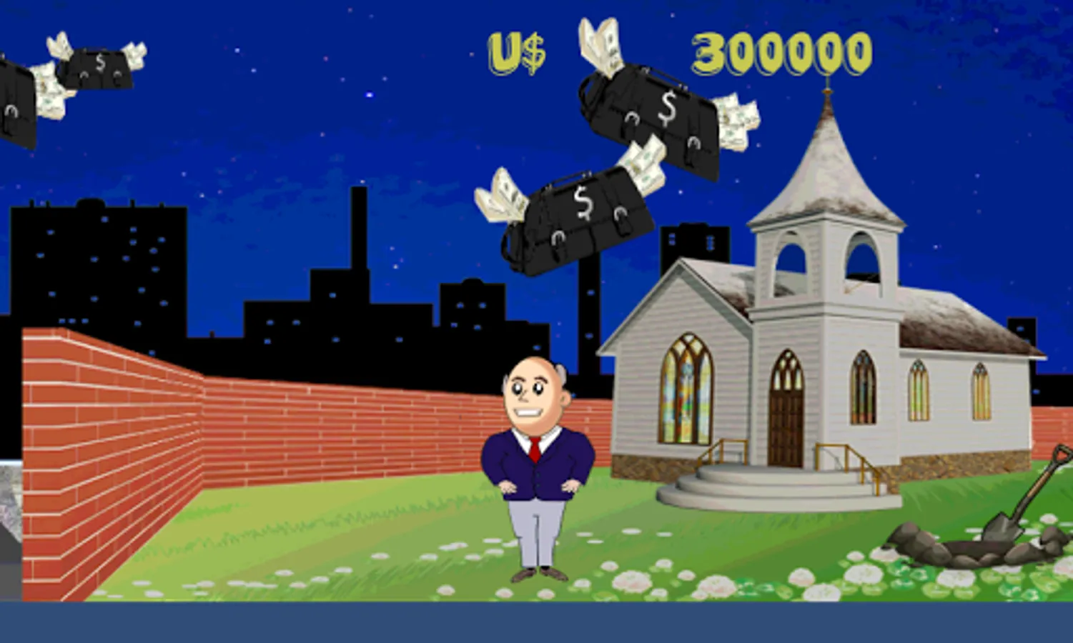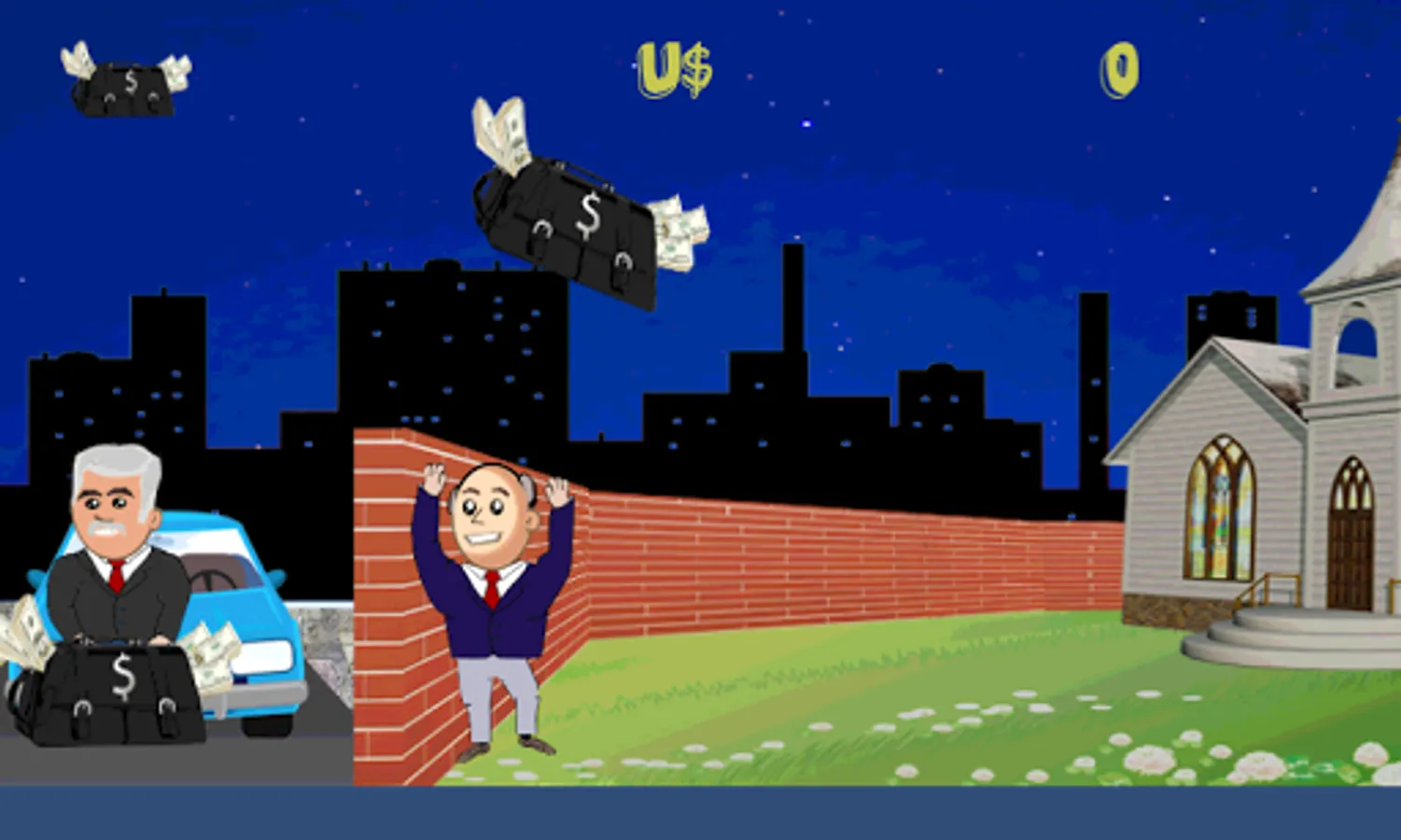 Political humor game based on real events in recent times in Argentina. You're a politician desperate to hide the money stolen from the people in the courtyard of a convent. Hurry up and do not drop the bags or the police will come.