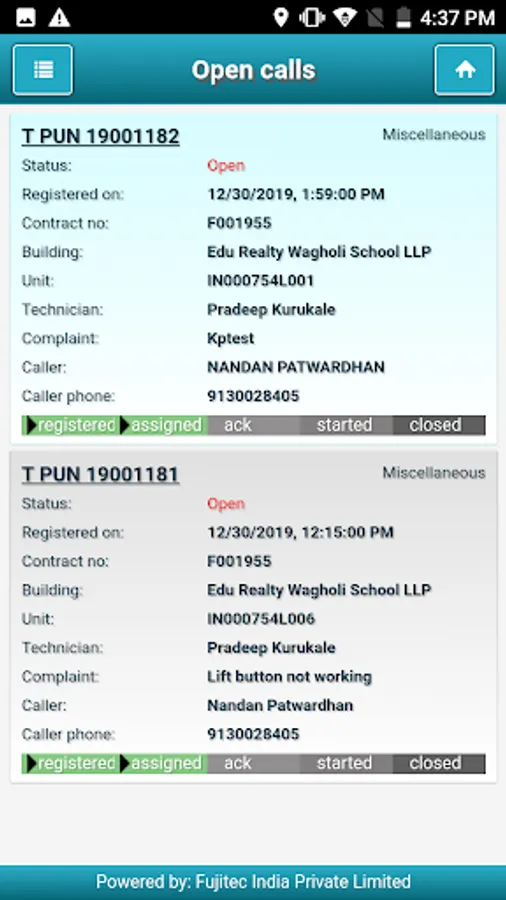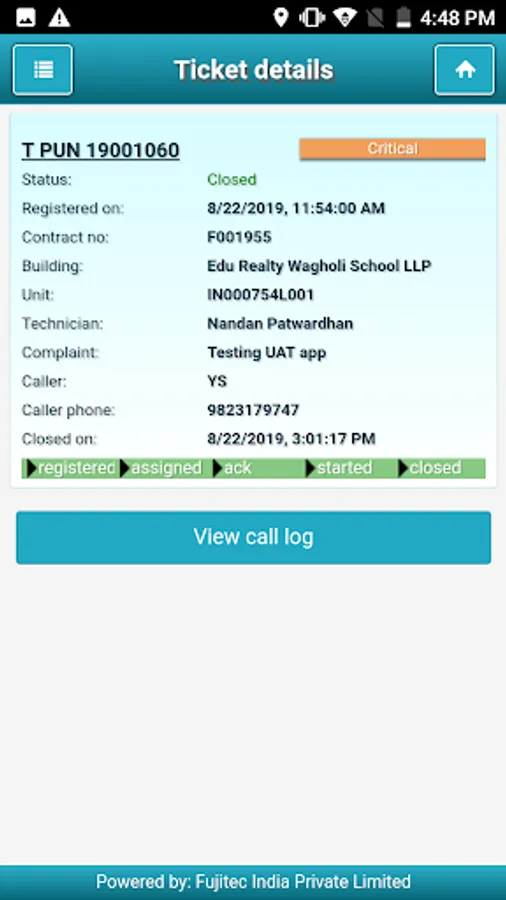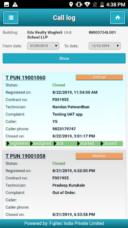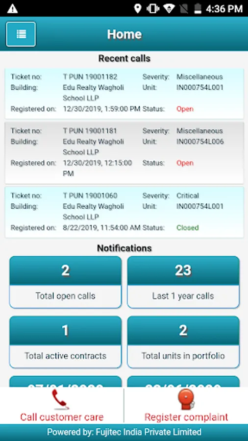 A self-service app for Fujitec elevator India customers. You can create callback tickets, view status of tickets status, contract status, and other information related to your units and service contracts for Fujitec CONNECTs clients