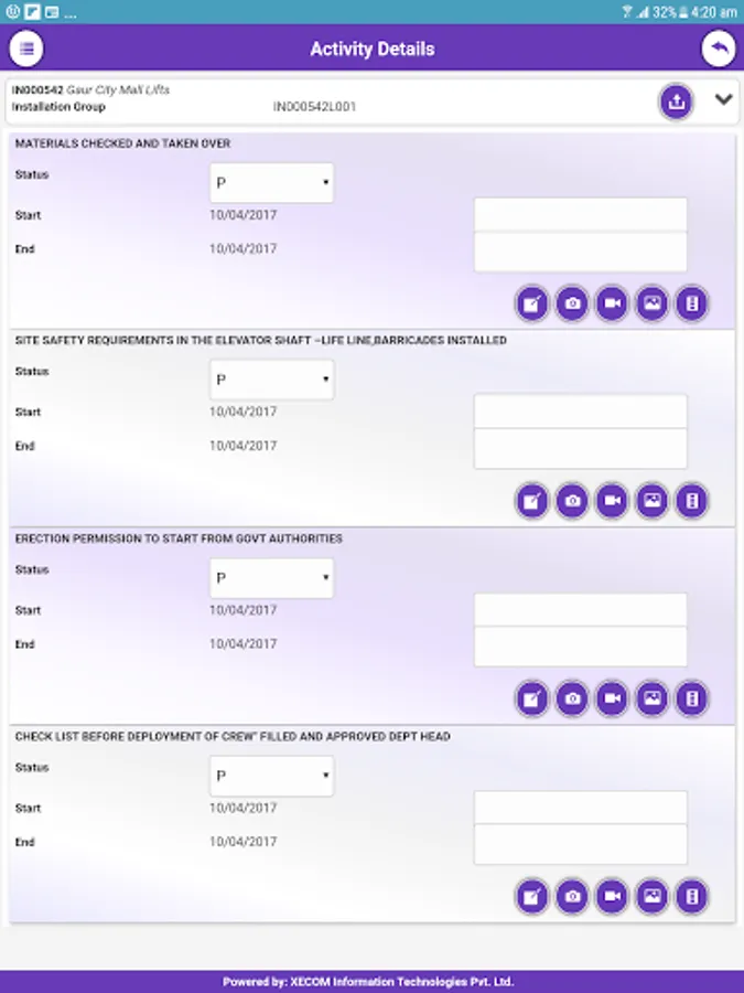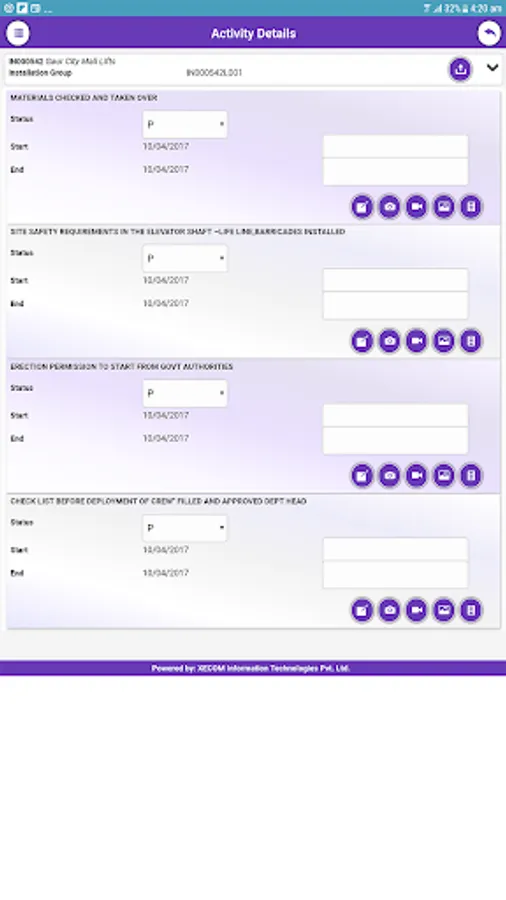 2] Supports updating completion percentage at activity level which helps tracking project completion percentage at lift / contract level