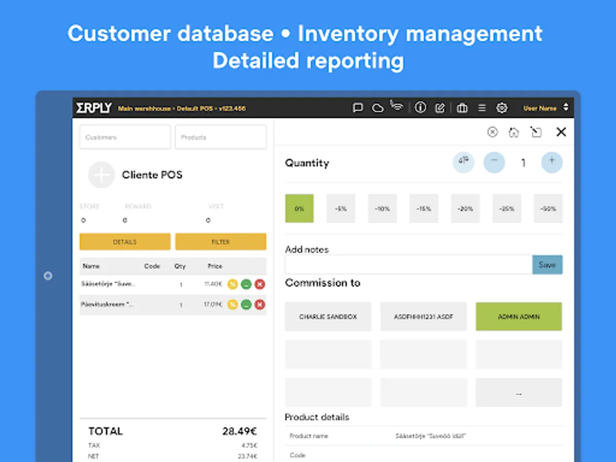 All POS transaction data entered into the App will automatically be synchronized in real time with your ERPLY account, leaving all of your books and reports completely accurate, 100% of the time.