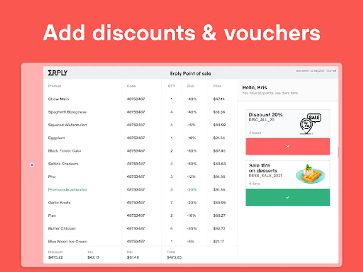Erply POS Client Display Application has the power to turn any Internet-connected tablet or computer into a method allowing customers to check in or register as new customer, view their cart, tip cashiers, and even sign-off on purchases.