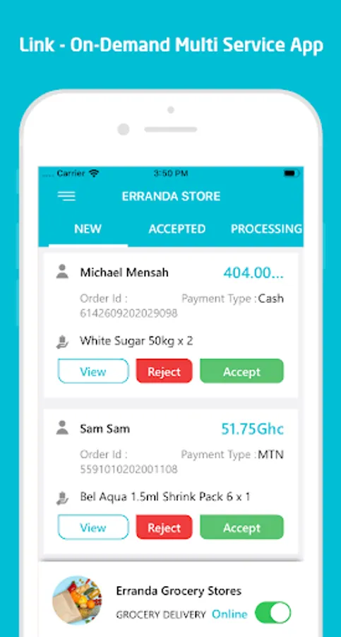 Download the Erranda store app and manage your store online. With Erranda you can expand your grocery store business and get real-time grocery requests.