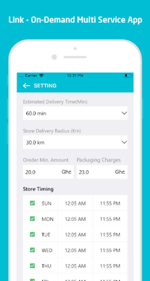 -Manage store details like store time, manage product status, packaging charge, delivery radius, minimum order amount, Estimated delivery time, and more