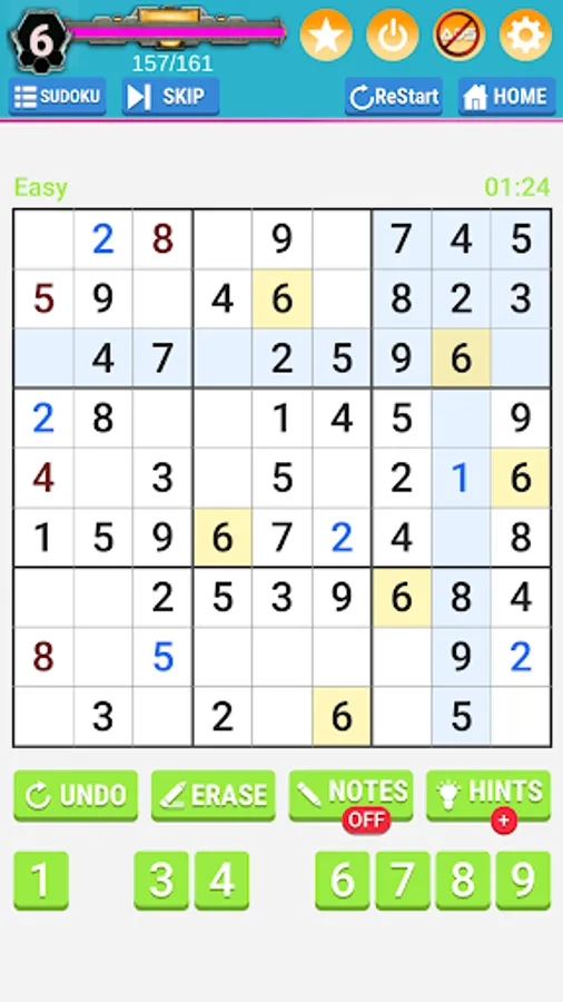 SUDOKU : put number between 1 and 9 each number must be putted only one time in row, rank and zone.