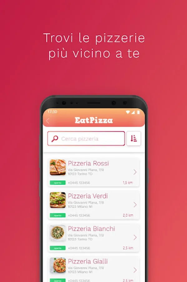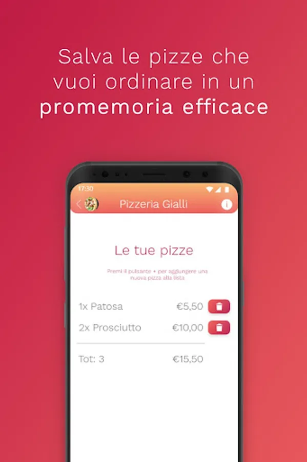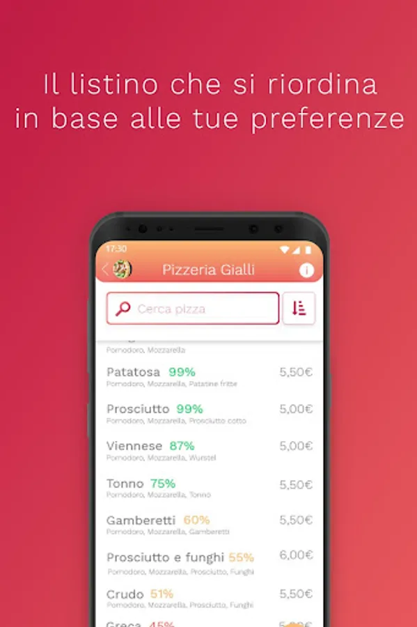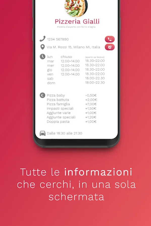 In one application you can find the digital price lists of your pizzeria and save the pizzas you like best.