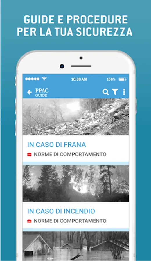 • CULTURE OF PREVENTION: the guides on the behavior to be followed in the event of a disaster with accessible information on the Emergency Plan, the Civil Protection Plan and the emergency areas of your area