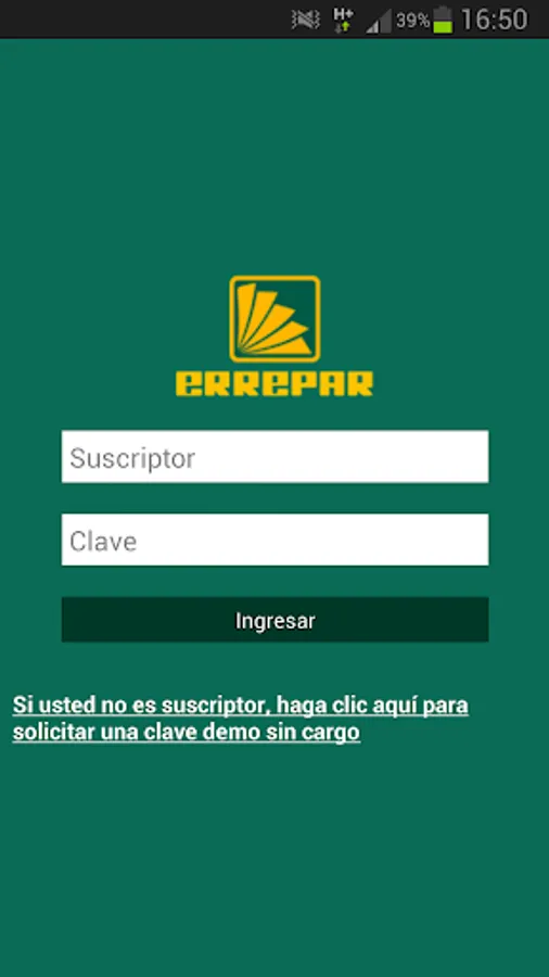 Those not Errepar WHATSOEVER subscribers, according to the version of the application, can use for 15 consecutive days from the day of the request for a demo key to access it. To extend the period of use of the system, the "non-subscribers" must purchase a subscription to EOL.